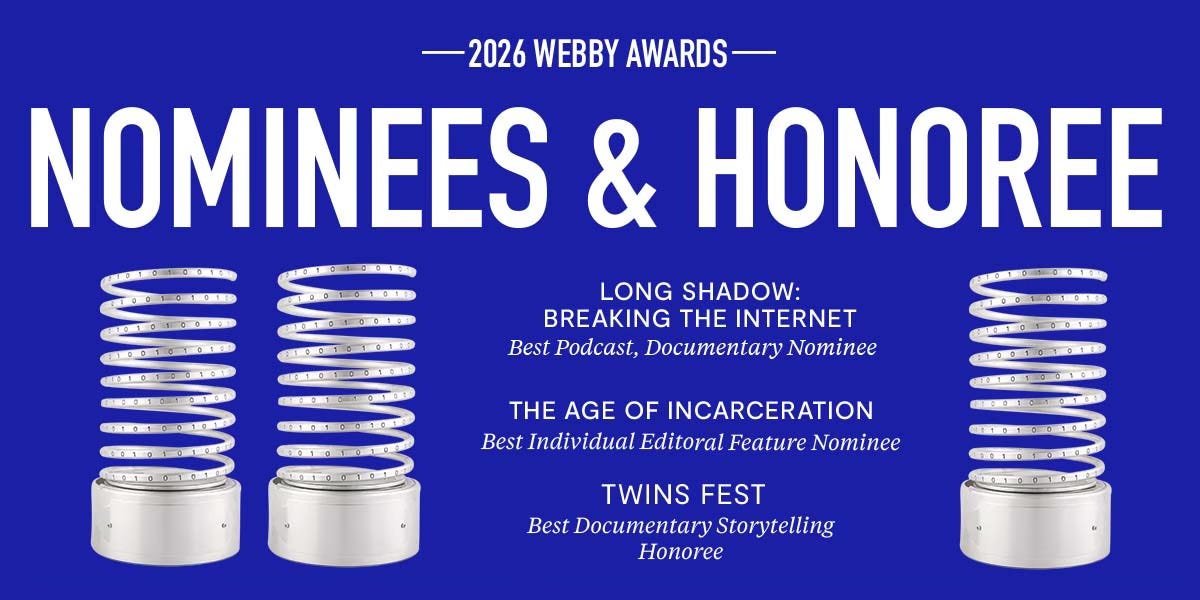 Long Shadow: Breaking the Internet, our limited series podcast exploring the rise and fall of the web, has been nominated for “Best Documentary Podcast.” Long Shadow has garnered a lot of acclaim through the years, but it’s never taken home one of the Webby’s sacred springs. Please vote for Long Shadow: Breaking the Internet in the Webby Awards here.Lastly, Twins Fest, the documentary short film that accompanies our photo feature Double Meaning, has been named an Webby Awards Honoree for “Best Documentary Storytelling.” It’s a wonderful piece and the perfect palette cleanser for the current news cycle. You can watch Twins Fest inside Double Meaning or at Long Lead’s YouTube page — but please vote first!