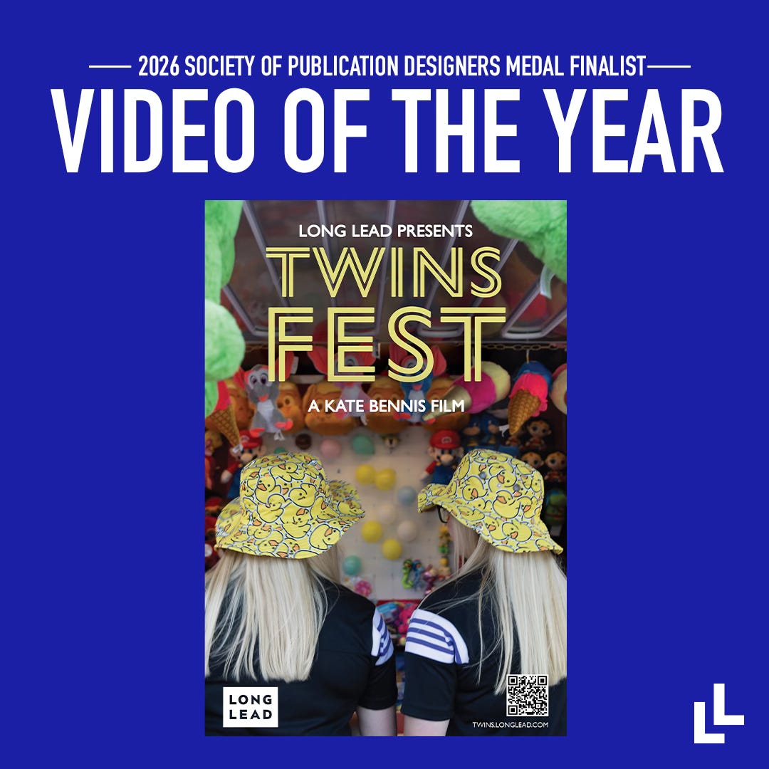 But get this: Double Meaningis actually a double-feature. Tucked inside is Twins Fest, a documentary film short by filmmaker Kate Bennis that was recently named an honoree at the Webby Awards. This week, it was also nominated for “Best Documentary Feature” and “Video of the Year” by the Society of Publication Designers and “Best Documentary Film Short” by the Telly Awards.
