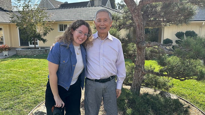 Behind-the-scene photos of Lieberman interviewing George Takei, a survivor of the Rohwer and Tule Lake camps. Photos by Jensen Rubinstein (left) and courtesy of George Takei (right).